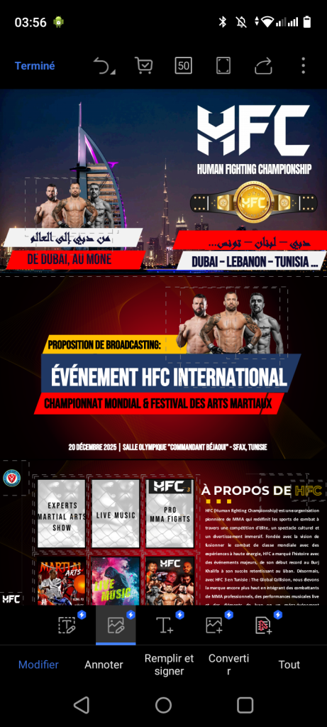 تحت الرعاية الرسمية لولاية صفاقس والإشراف الرسمي للجامعة التونسية للكونغ فو والووشو، تعلن “HFC International” عن تنظيم مهرجانها العالمي للرياضة وبطولة HFC العالمية للفنون القتالية المختلطة، لأول مرة في تونس وشمال إفريقيا، خلال ديسمبر 2025. سيشهد هذا الحدث الرياضي التاريخي مشاركة أكثر من 30 رياضيًا محترفًا، يمثلون نخبة من المقاتلين من أكثر من 20 دولة من 5 قارات مختلفة.